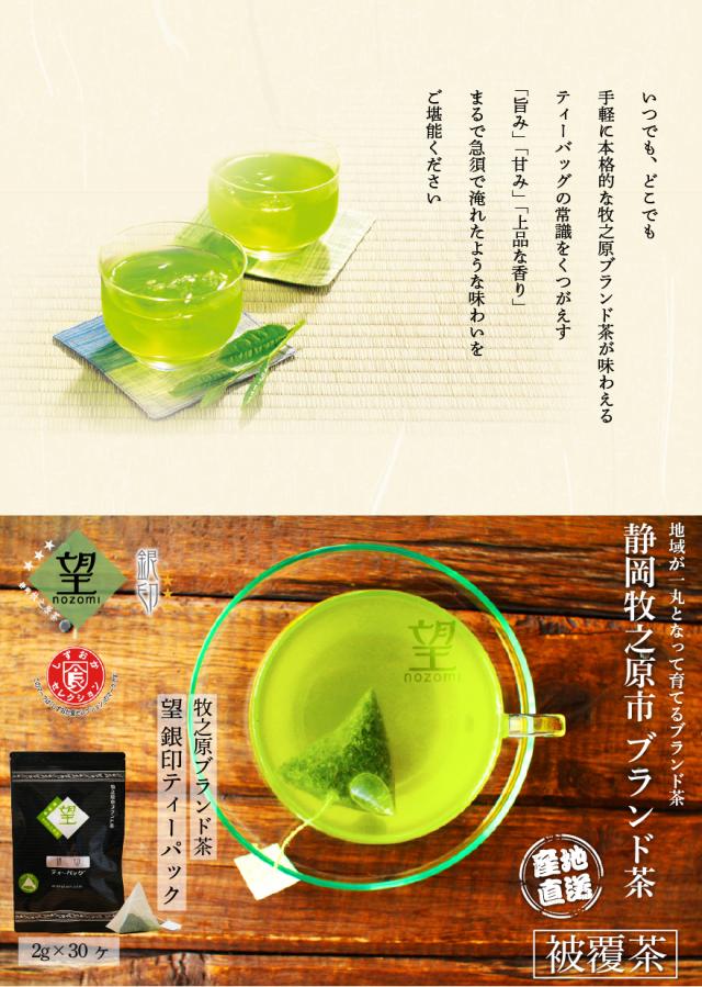 お茶 緑茶 静岡茶 深蒸し茶 被覆茶 日本茶 水出し 冷茶 ティーバック 静岡牧之原ブランド茶 望銀印 ティーパック 30個入 がぶ飲み メール便 ティーバッグ 送料無料 タグ付 ナイロン 業務用 プレミアム ギフト 緑茶パック 日本茶 茶葉 お茶の葉 国産 カテキン agesugi_sgu