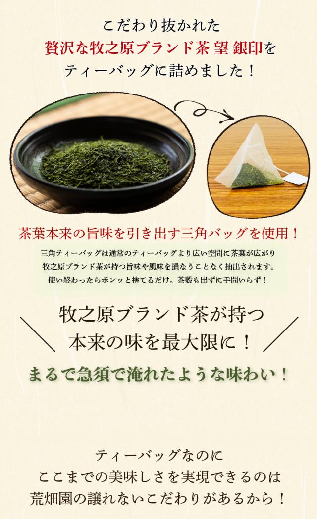 静岡牧之原ブランド茶望 銀印がティーパックになって登場。静岡県 食のブランド「静岡セレクション」に認定!