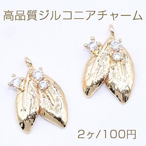 高品質ジルコニアチャーム リーフ カン付き 9×14mm ゴールド【2ヶ】