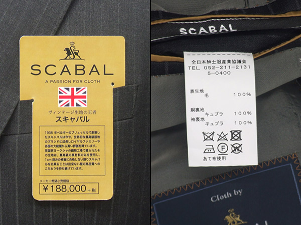 スキャバルは、マーチャント(服地商社)という立場でありながら、英国ハダースフィールドにる複数のミルを傘下にもち、バンチブック(生地見本帳)を使用した流通システムを世界で最初に導入したメーカーとしても有名です。歴史と伝統を重んじるロンドンのサヴィルロゥにおいても一目置かれた存在として、その地位を確立しています。