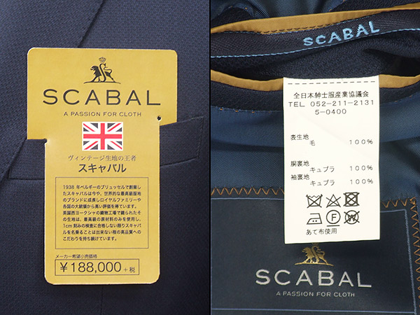 スキャバルは、マーチャント(服地商社)という立場でありながら、英国ハダースフィールドにる複数のミルを傘下にもち、バンチブック(生地見本帳)を使用した流通システムを世界で最初に導入したメーカーとしても有名です。歴史と伝統を重んじるロンドンのサヴィルロゥにおいても一目置かれた存在として、その地位を確立しています。