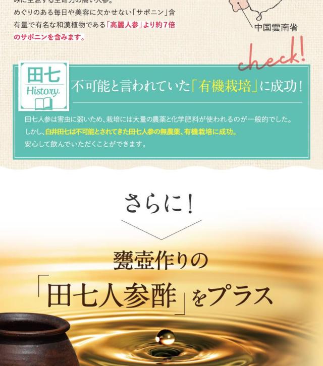 - 発送が早くて助かります。 『田七人参酢』飲みやすくてお安いので手軽に購入でき身体に良いです。 またリピしますので宜しくお願い致します。