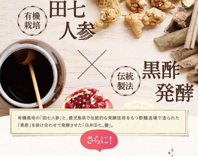 - お値段もお安く田七人参と黒酢で身体に良いので飲み続けていきたいと思います。 黒酢も飲みやすいです。 一包されているので旅先にも持っていきやすいです。