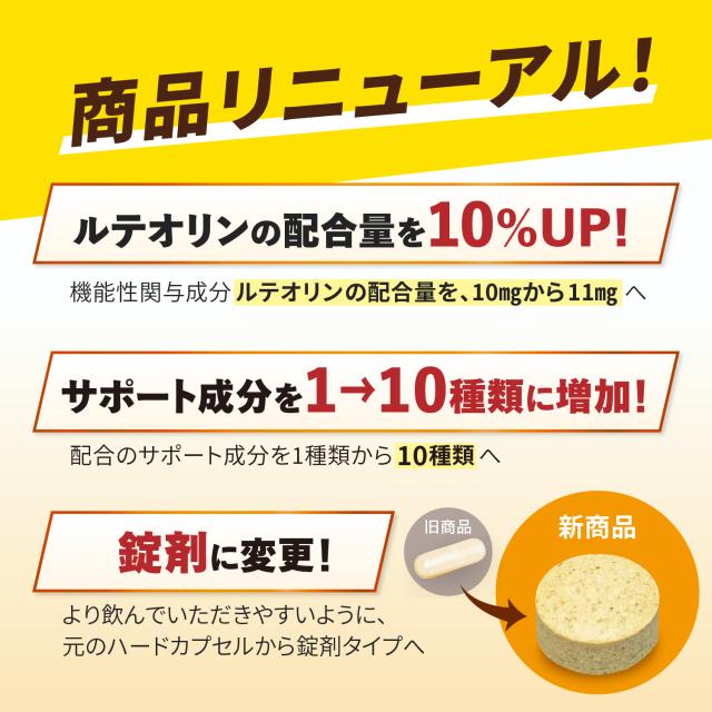 届出表示:本品には、ルテオリンが含まれます。ルテオリンには尿酸値が高め(5.5 mg/dL超〜7.0 mg/dL未満)な男性の尿酸値を下げる機能があることが報告されています。