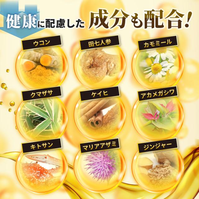 原材料:菊の花エキス末 (菊の花エキス 澱粉分解物)(国内製造) マルチトール 有機田七人参粉末 マリアアザミ果実エキス末 ウコンエキス末 キトサン(かにを含む) カミツレ抽出物 ケイヒエキス末 クマザサ粉末 アカメガシワエキス末 魚肉抽出物 ジンジャーエキス末/セルロース HPC ステアリン酸カルシウム 二酸化ケイ素 CMC