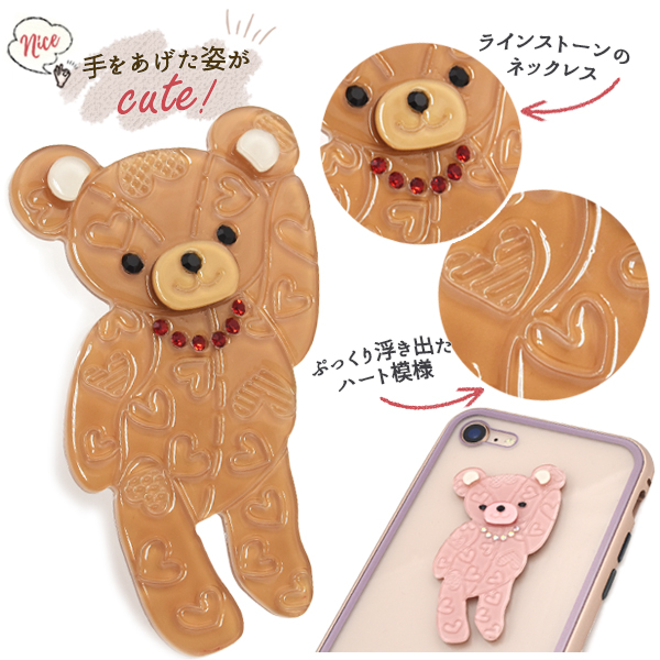 ラインストーンのネックレスに手をあげた姿が可愛い テディベアのデコパーツです。