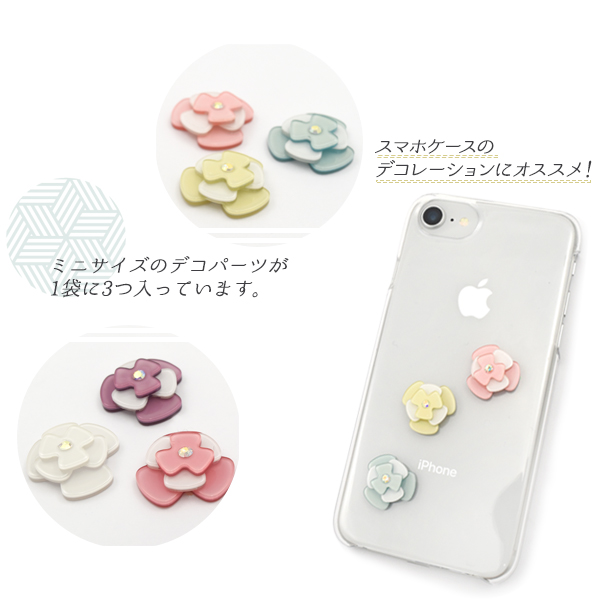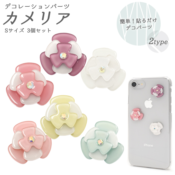 デコパーツ カメリア 椿 フラワー Sサイズ 3個セット かわいい オシャレ 華やか パステルカラー デコ 小物作り デコレーションパーツ 花 プチDIY オリジナルケース 作成素材 可愛い きらきら 小花 ミニフラワー flower つばき ツバキ