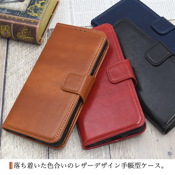 落ち着いた色合いのカラーレザー手帳型ケース。