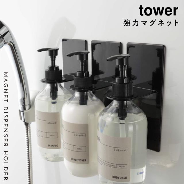 ディスペンサーホルダー シャンプー 浮かせる マグネット tower タワー 山崎実業 バスルーム 浮かせる収納 ホワイト ブラック マグネットディスペンサーホルダー タワー