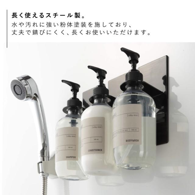 ディスペンサーホルダー,シャンプーラック,吊り下げ,ディスペンサー,シャンプーボトル,ハンドソープ,除菌ジェル,ボトル,マグネット,磁石,マグネット収納,マグネットラック,マグネット収納ラック,バスルーム,お風呂,浴室,風呂,お風呂用,バス収納,バス小物,壁,壁掛け,壁面,浮かせる,浮かせる収納,空中収納,簡単設置,収納ラック,収納,ラック,ホルダー,カビ,汚れ,ヌメリ,ぬめり,予防,防止,清潔,衛生的,汚れ防止,汚れにくい,tower,タワー,TOWER,ホワイト,ブラック,白,黒,モノトーン,山崎,yamazaki,生活感が出ない,すっきり,コンパクト,省スペース,シンプル,シンプルデザイン,スタイリッシュ,おしゃれ,お洒落,オシャレ,インテリア,雑貨,部屋,賃貸,マンション,アパート,自宅,家,一人暮らし,独り暮らし,トータルコーディネート,新生活,引越,引越し,引っ越し,新築,新居,ベーシック,定番,普段使い,デイリーユース,親子,家族,ファミリー,共働き,ワーママ,片付け,整理整頓,アイデア,便利グッズ,便利アイテム,おすすめ,オススメ,人気,