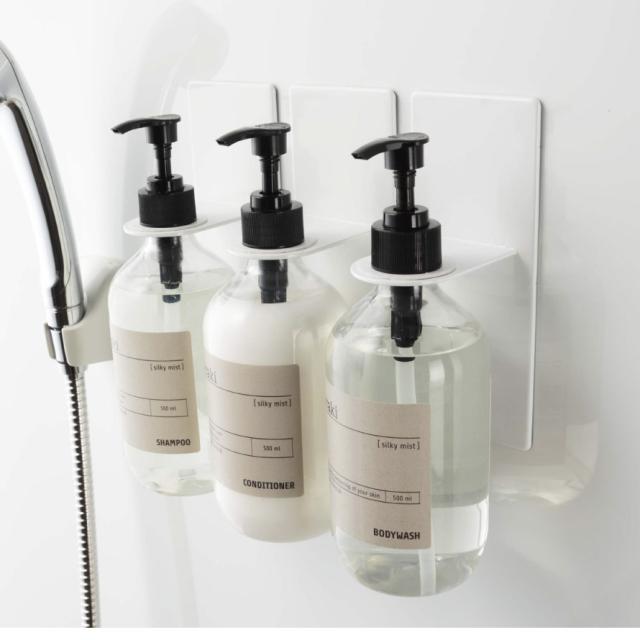 シャンプー、コンディショナー、ボディシャンプーをまとめてすっきり収納してもgood。