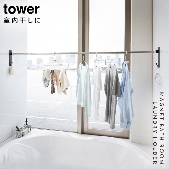 室内干し 部屋干し ハンガー マグネットバスルーム物干し竿ホルダー2個組 タワー tower 室内物干し 浴室物干し ホルダー 壁 マグネット 磁石 物干し竿 浴室乾燥 浴室 洗濯物 物干し 山崎実業