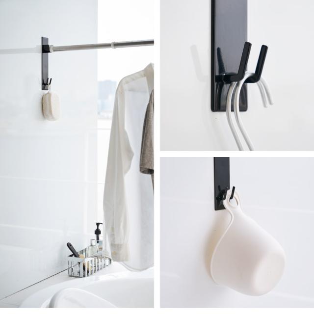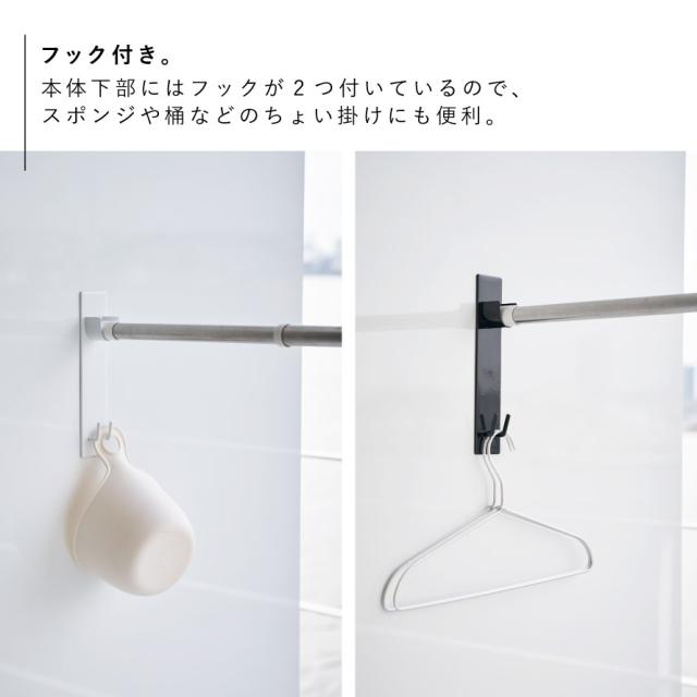本体下部にはフックが2つ付いているので、スポンジや桶などのちょい掛けにも便利。