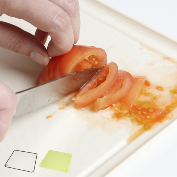 色移りの多い食材や、匂いの強い食材、大きなまな板を使うまでもないちょっと使いに便利なサイズです。