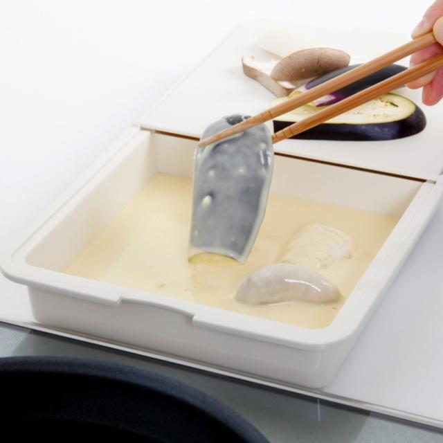 揚げ物の際には食材を切ったあとにそのままバットとしてもお使いいただけるのでたいへん便利です。