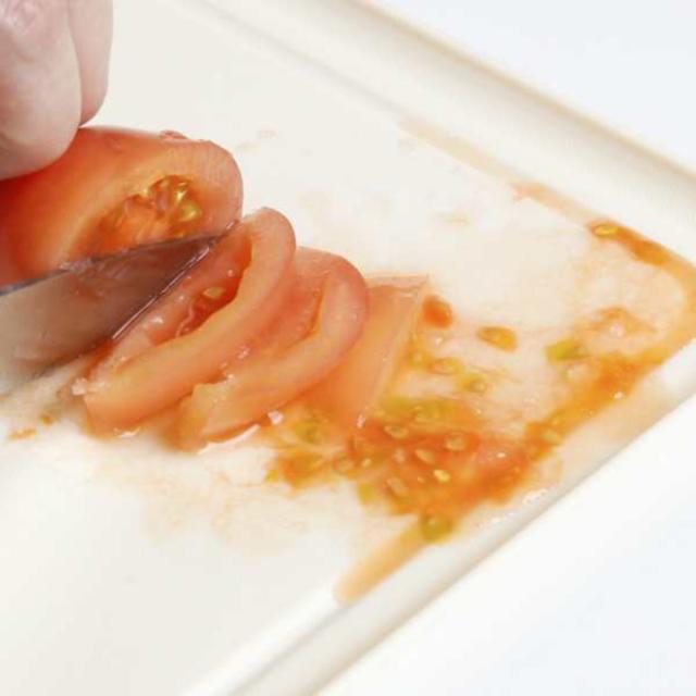 切った食材から出る汁を受け流す溝があるので、水分の多い食材を切っても、しっかり受け止めてくれるのでキッチンを汚しません。
