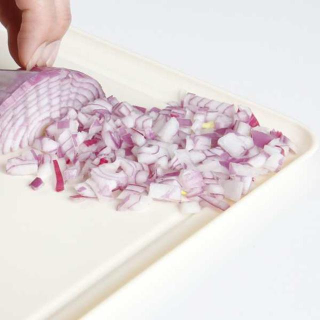 フチに高さがあるので細かく切った食材のこぼれ落ちを防ぎます。