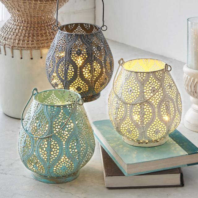 キャンドルホルダー キャンドル ランタン ライト アラベスク ブルー ホワイト ブラック W 約16.5cm D 約17cm H 約17.5cm ランプ 照明 フラワーベース フレンチ モロッカン アンティーク風 おしゃれ かわいい ホテル リゾート BOHO アジアン アジア 雑貨 [66982]