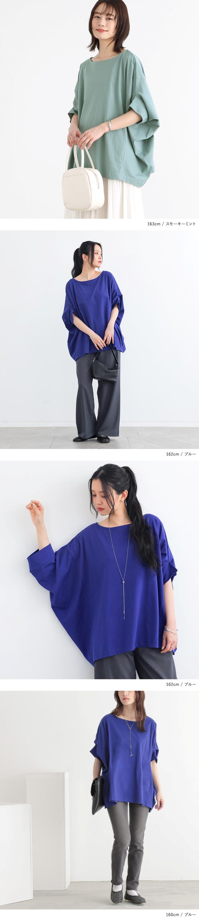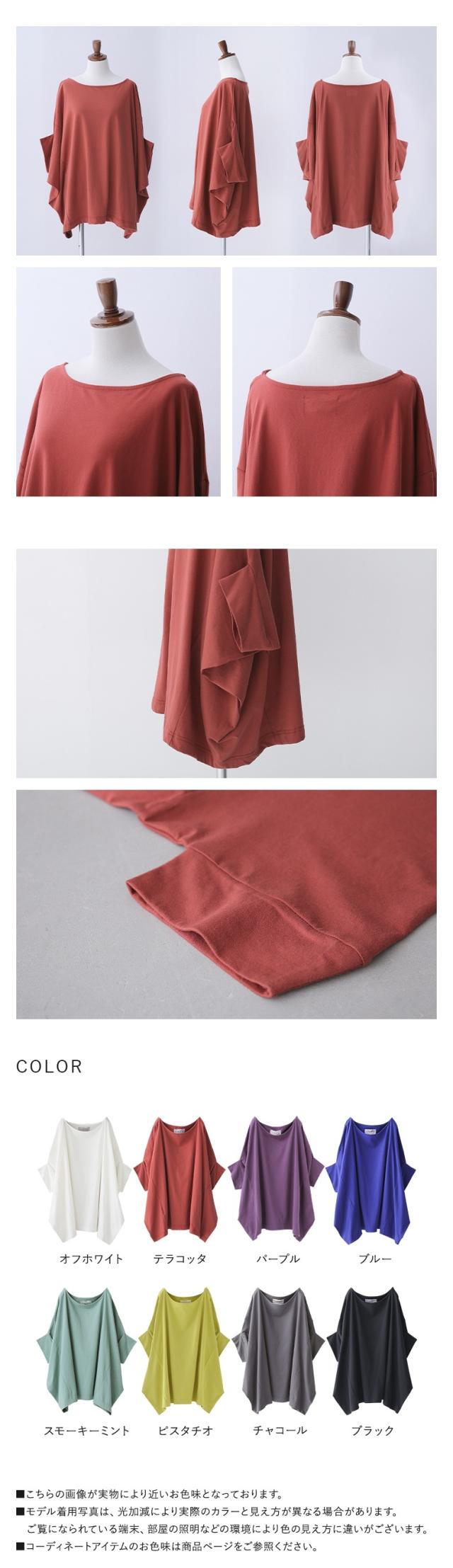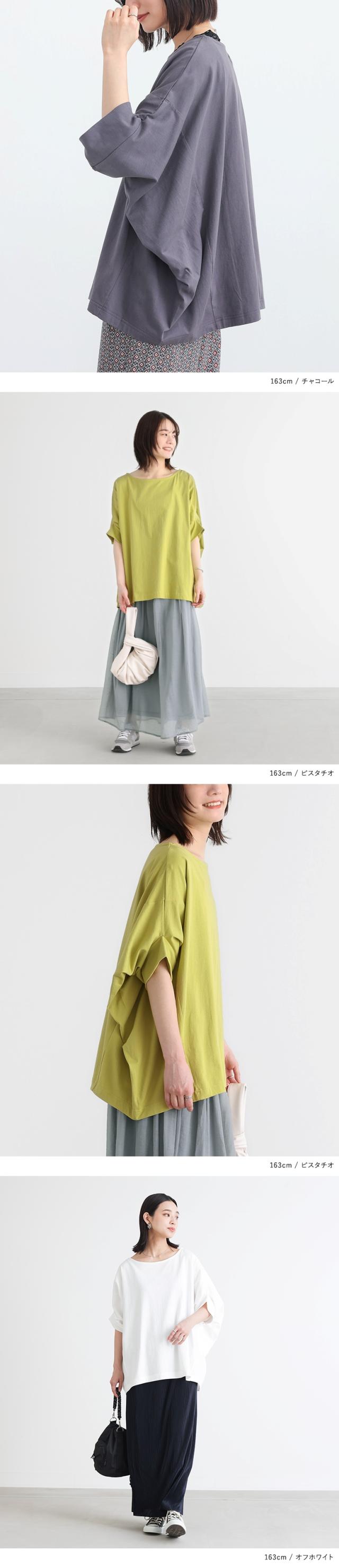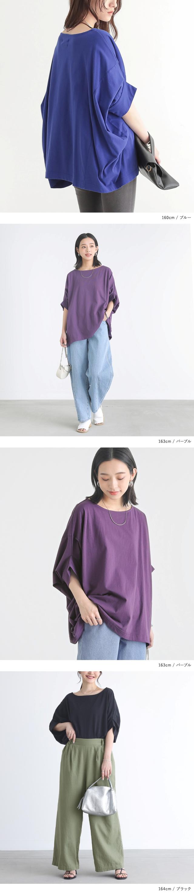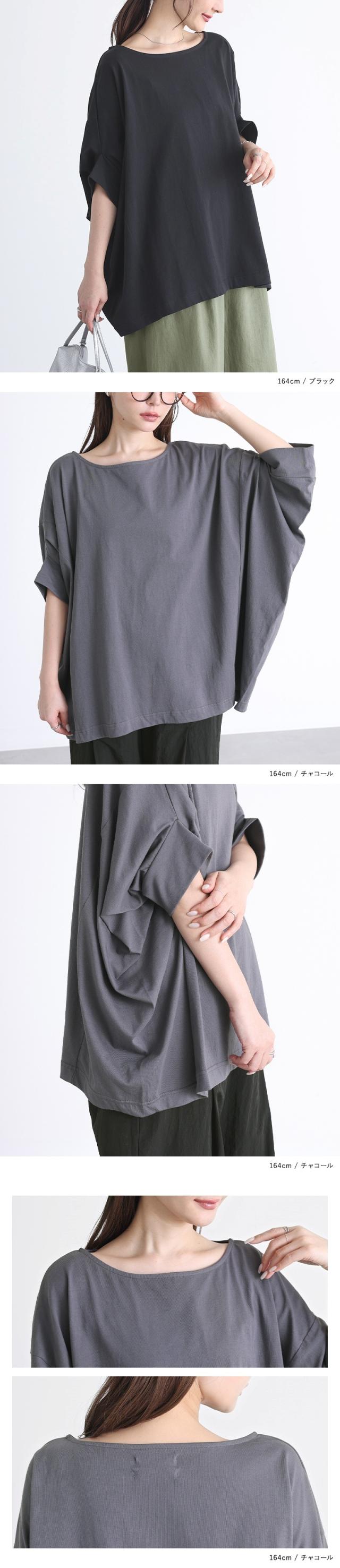 Tシャツ レディース カットソー 春 夏 トップス 半袖 五分袖 七分袖 チュニック コットン ドレープ 変形 ドルマン コクーン ボートネック 体型カバー 二の腕カバー 長め 大きいサイズ ゆったり※メール便可※【10】