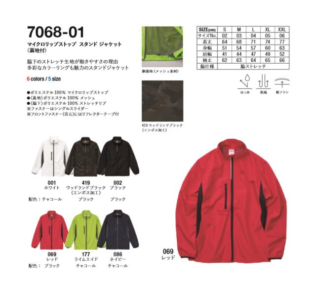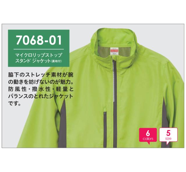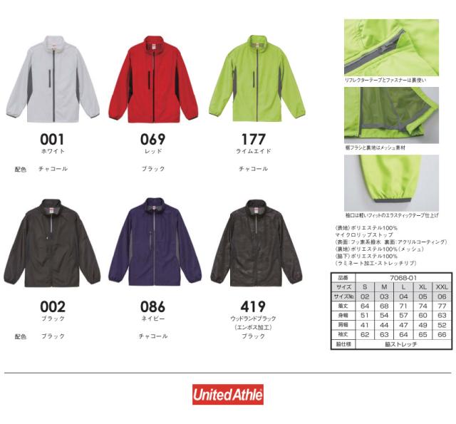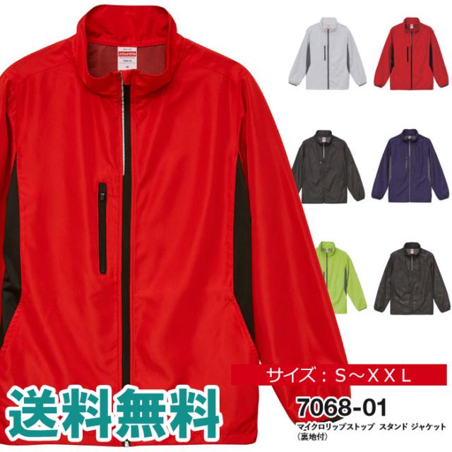 ウインドブレーカー メンズ 無地 UnitedAthle ユナイテッドアスレ マイクロリップストップスタンドジャケット 裏地付 防風 撥水 スポーツ アウトドア【7068-01】送料無料
