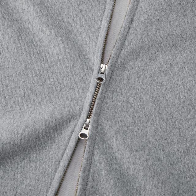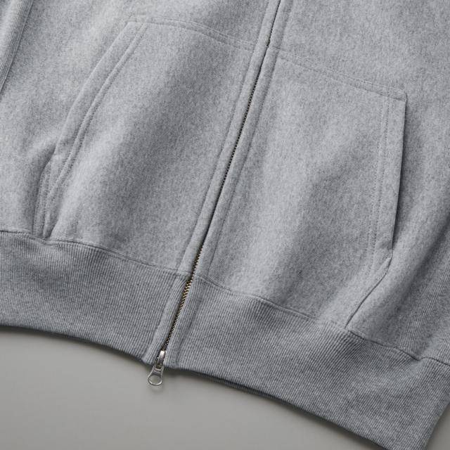 大きめで綺麗な形のフードにこだわった、ダブルスライダーで着まわしやすいZIPパーカ。