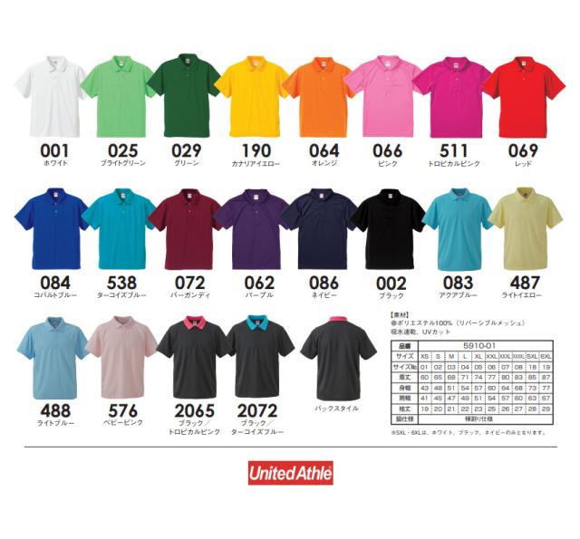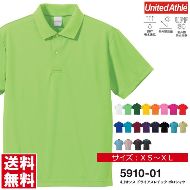 ポロシャツ 半袖 メンズ 無地 UnitedAthle ユナイテッドアスレ 4.1オンス ドライアスレチックポロシャツ スポーツ ゴルフ イベント お揃い【5910-01】送料無料 通販A15