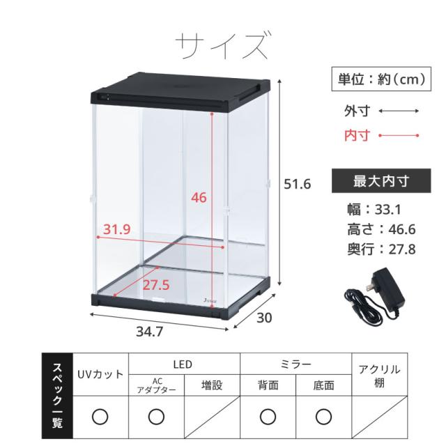 ハイタイプ登場 UVカット コレクションケース J-STAGE HIGH LED基本タイプ 底面・背面ダブルミラー付き 送料無料 LED アクリルケース LED付き フィギュアケース 卓上 コレクションラック フィギア ディスプレイケース LEDライト付き 照明付き