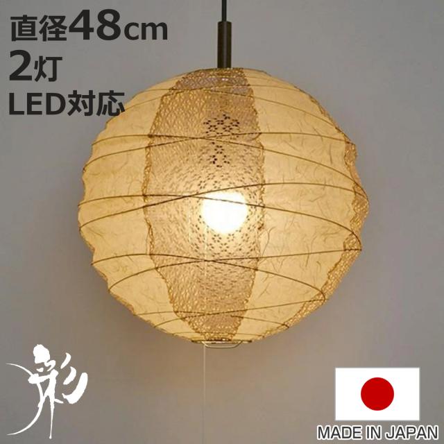 ペンダントライト 2灯 cross 雲龍ベージュ×小梅茶 直径48×高さ45.5cm 和紙照明 日本製 和風 天井照明 ( 照明 天井 和風照明 丸 吊り下げ ライト 照明器具 2灯式 リビング ダイニング 居間 寝室 和室 洋室 おしゃれ 和紙 食卓用 )
