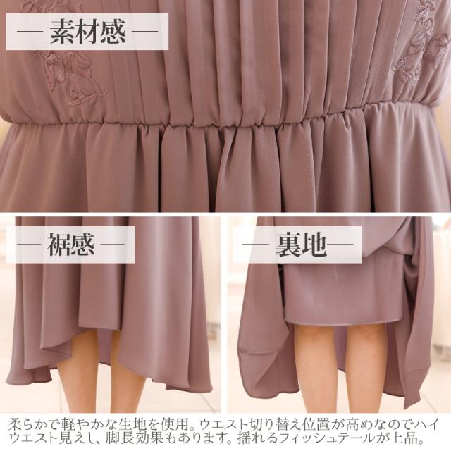 後ろが長いフィッシュテールデザインなので、歩くたび揺れてエレガントな印象に。