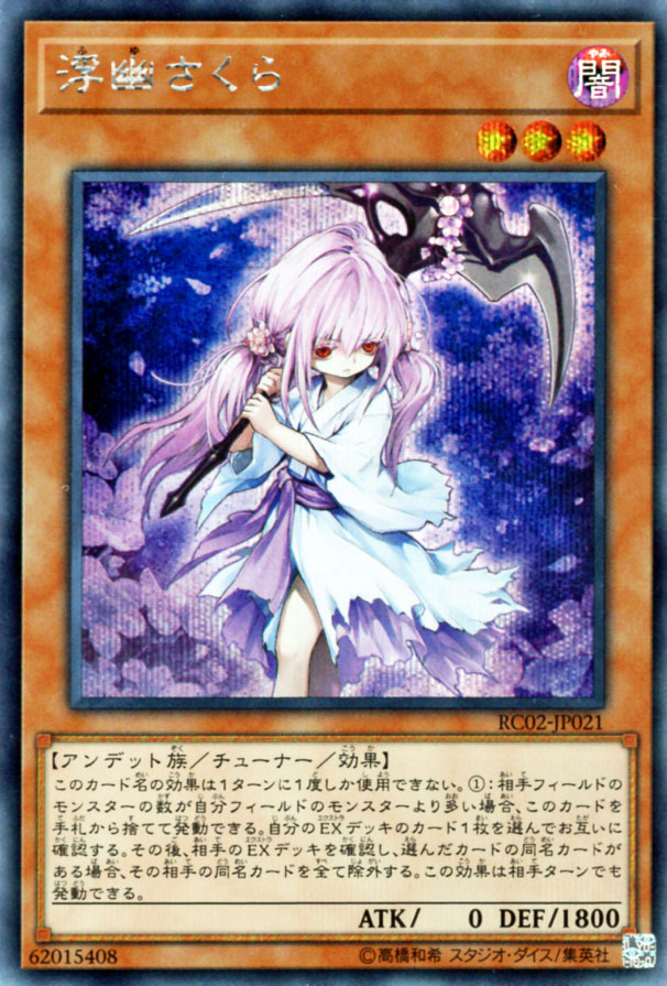 傷あり遊戯王カード 浮幽さくら シークレットレア キズあり!プレイ用 傷ありカード 特価品 チューナー・効果モンスター