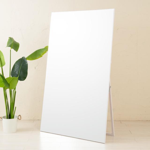 ワイドな90cm幅 全身姿見鏡 スタンドミラー ノンフレームフチなし WIDE Mirror NK-9000 ホワイト(WH) ヨガやダンスの練習におすすめ!日本製 飛散防止加工