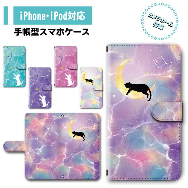 スマホ ケース カバー 手帳型 iPhone iPod iPhone11 iPhoneSE アイフォン 送料無料 動物 猫 ネコ 波模様 ゆめかわいい / dc-321