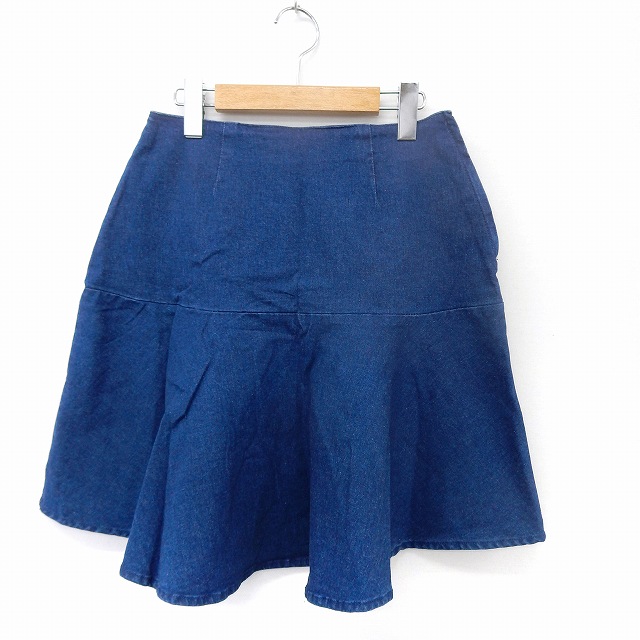 【中古】フェリシモ スカート デニム フレア サイドジップ 膝丈 67 ブルー /ST13 レディース