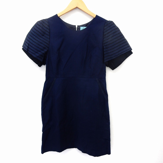 【中古】デイシー deicy ワンピース 膝丈 半袖 バックジップ パフスリーブ 1 ネイビー 紺 /ST18 レディース