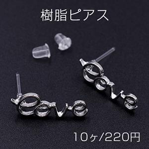 樹脂ピアス アルファベットlove 7×20mm クリア/ロジウム【10ヶ】