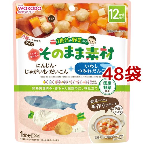 和光堂 1食分の野菜入り そのまま素材+いわしつみれだんご 12か月頃〜(100g*48袋セット)[ベビーフード(1歳から) その他]