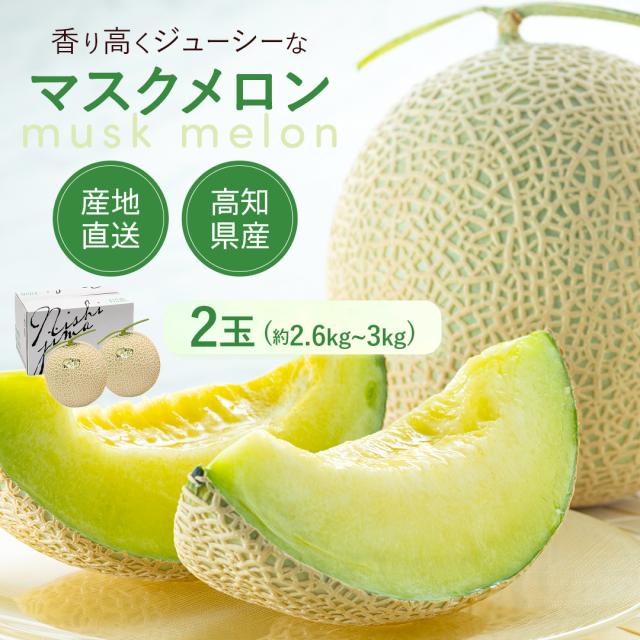 高級 マスクメロン 2玉 約 3kg【 ご家庭用 】【 送料無料 】※但し、北海道・沖縄は別途送料が必要( 西島園芸団地 ) お取り寄せ フルーツ メロン 高知 実用的 贈り物 プレゼント
