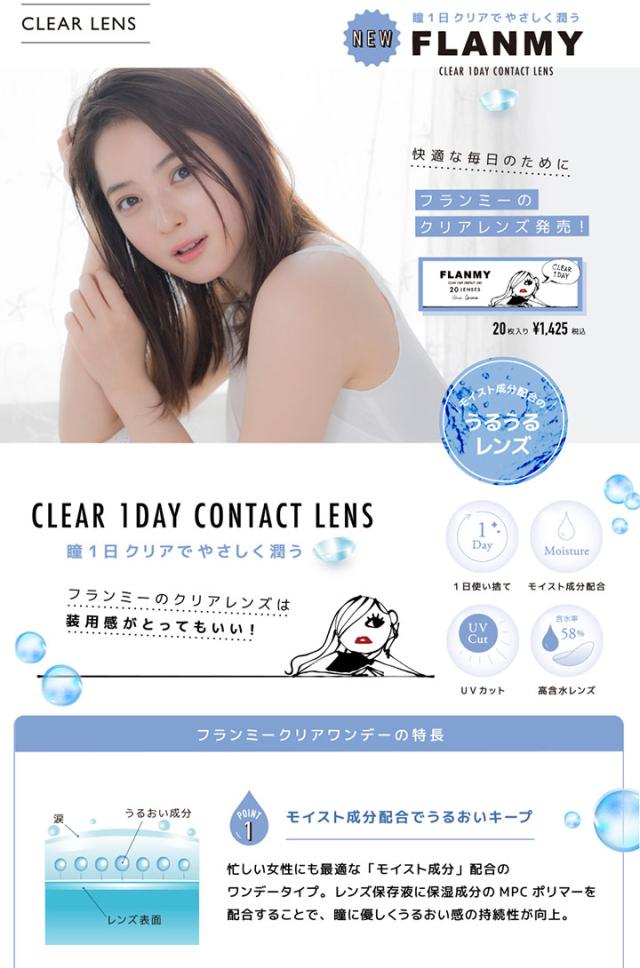 【郵パケット送料無料】フランミークリアワンデー【1箱20枚入】1day コンタクトレンズ ワンデー コンタクト 1日使い捨て FLANMY CLEAR 1DAY 佐々木希イメージモデル ∀