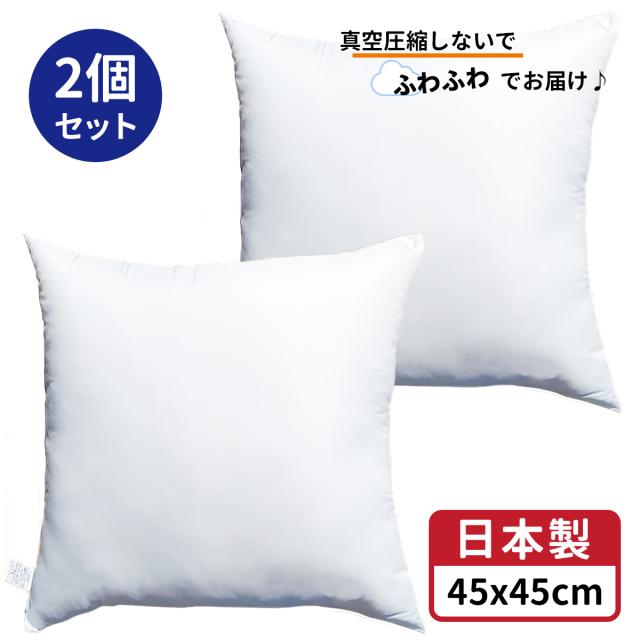 2個セット ヌードクッション 2個 中身 45x45 cm ホワイト 日本製 無圧縮タイプ ふんわり ボリューミー ポリエステル わた 使用 クッション中身 45x45 クッション セアテ 背あてクッション 背当てクッション セアテクッション 背あて 45 45 ホコリが出にくい 正規品
