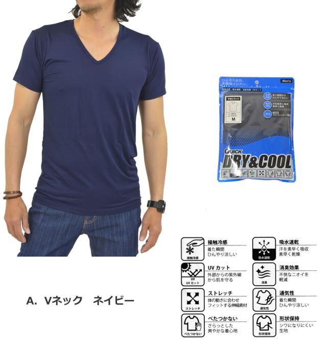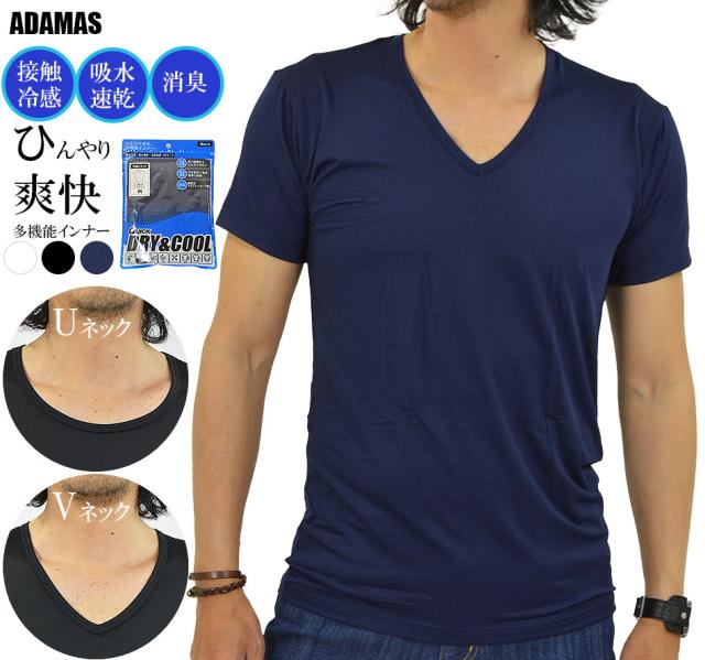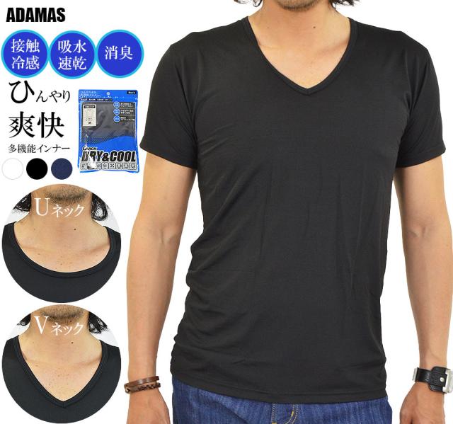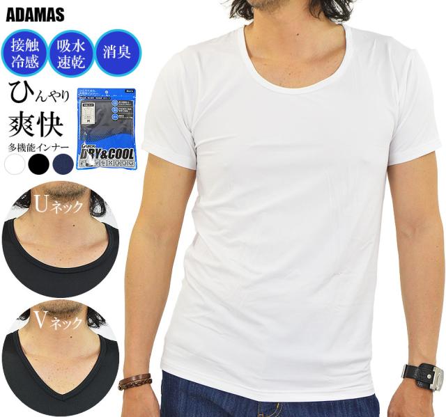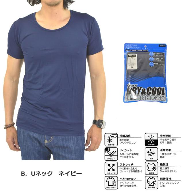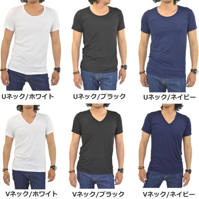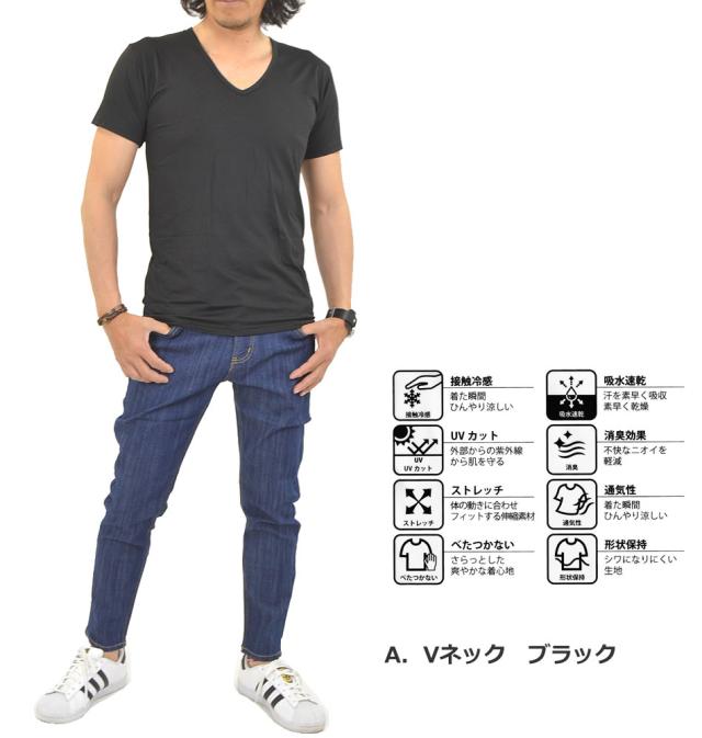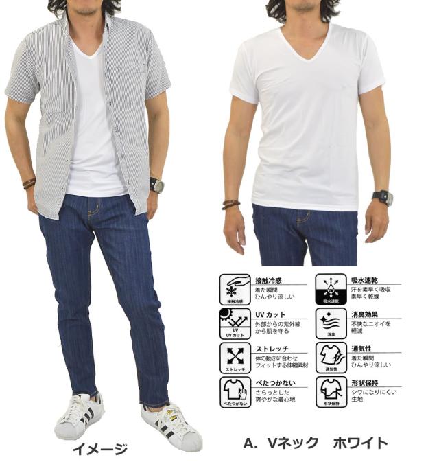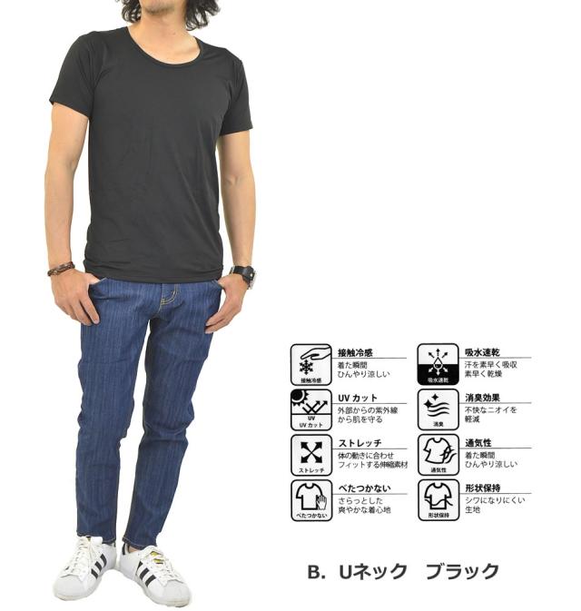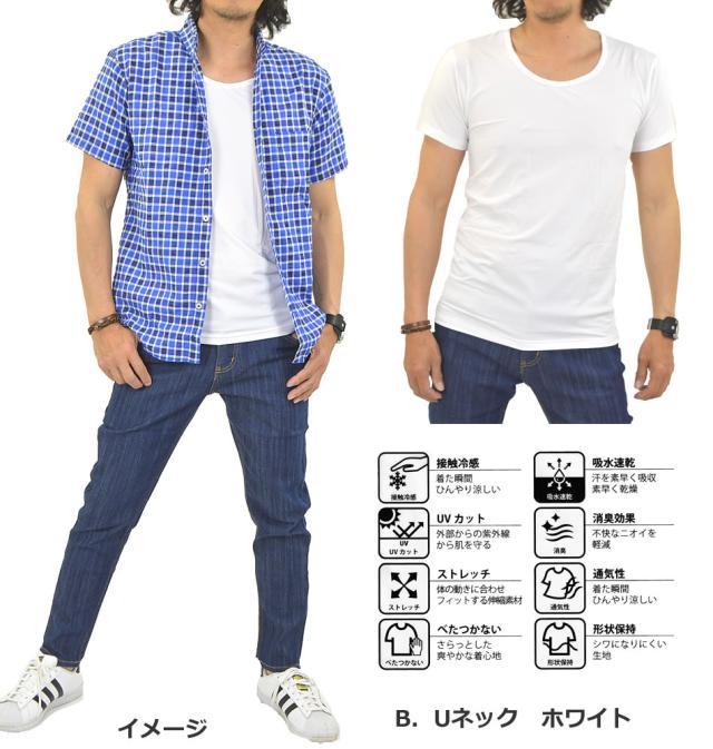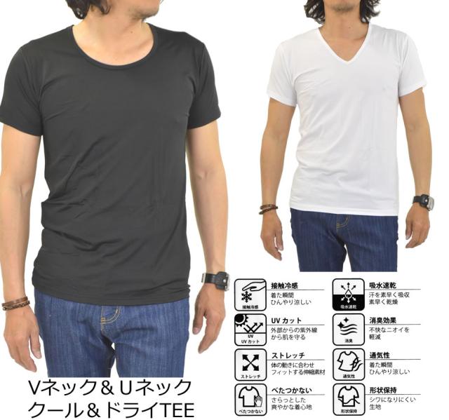 接触冷感 多機能 インナーシャツ 下着 半袖 Tシャツ メンズ インナー 無地 Vネック Uネック 冷感 吸水 速乾 UVカット 消臭 デオドラント ストレッチ 通気性 夏新作 メール便送料無料