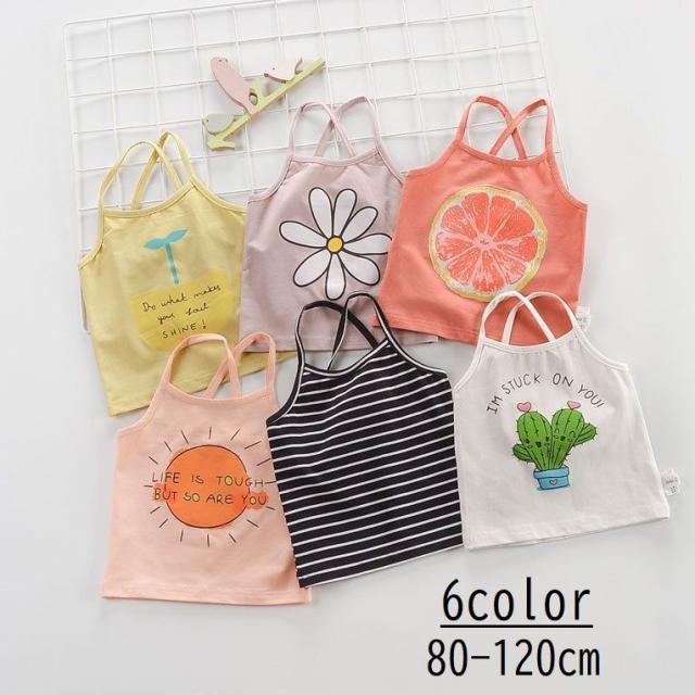 キャミソール キャミ キッズ ベビー 子供 女の子 女児 子供用 子供服 トップス インナー バッククロス ボーダー ロゴ イラ