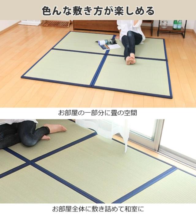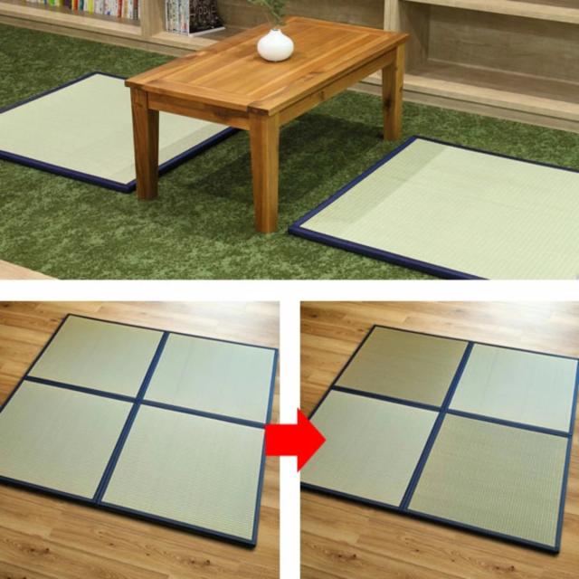 フローリングに置くだけで、くつろぎの和の空間を実現できるユニット畳です。好きな向きを選んで市松敷きにしたり、直線に並べてシンプルにしてみたり、いろいろな敷き方が楽しめます。お部屋の一角や中心に置くだけで、お部屋を模様替えできます。こたつ敷きや来客用にもご使用ください。