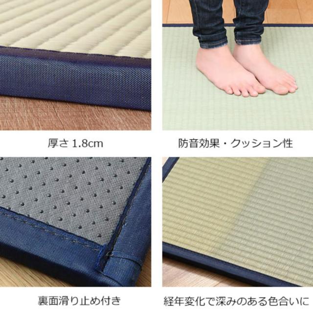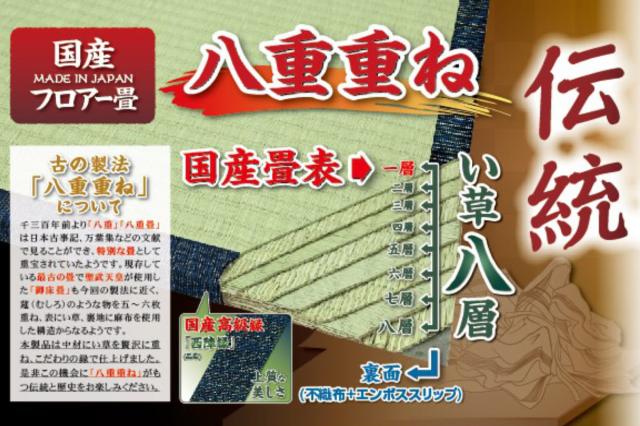 | 材質 | 表面:い草100% 床(とこ):い草7層 裏面:不織布・エンボススリップ 縁布:ポリエステル・ポリプロピレン |
