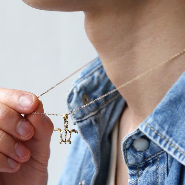 小振りサイズがかわいらしい、ホヌ(海亀)型のペンダント。ハワイでは古来よりホヌを神様の使い・幸福を運んでくる「海の守り神」として大切にしてきました。幸福や繁栄の象徴としてハワイアンアクセサリーでも人気のモチーフの1つです。お守り代わりに着けるはもちろん、ペアアクセとして着けるのもオススメです。