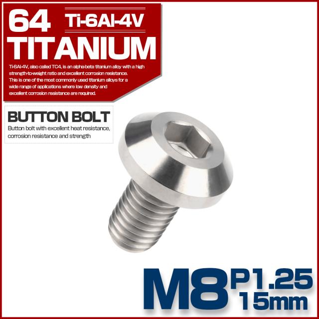 チタンボルト ボタンボルト M8×15mm P1.25 六角穴 テーパーヘッド カスタムボルト シルバー チタン原色 JA745