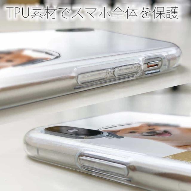 | 素 材 | 側面はゴムのように柔らかいTPU素材で、スマホ本体を守ります。万が一の落下でもケースが割れることがなく、耐久性の高いケースとなります。クリア(透明)のTPUケースにプリントしていますので、スマホ本体のカラーを活かしながらデザインケースが楽しめます。 |
