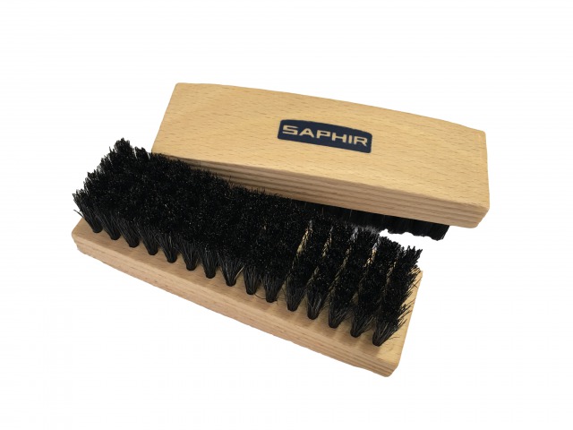 コバ、縫目など靴全体のゴミやホコリを吐き出すようにブラッシングします。