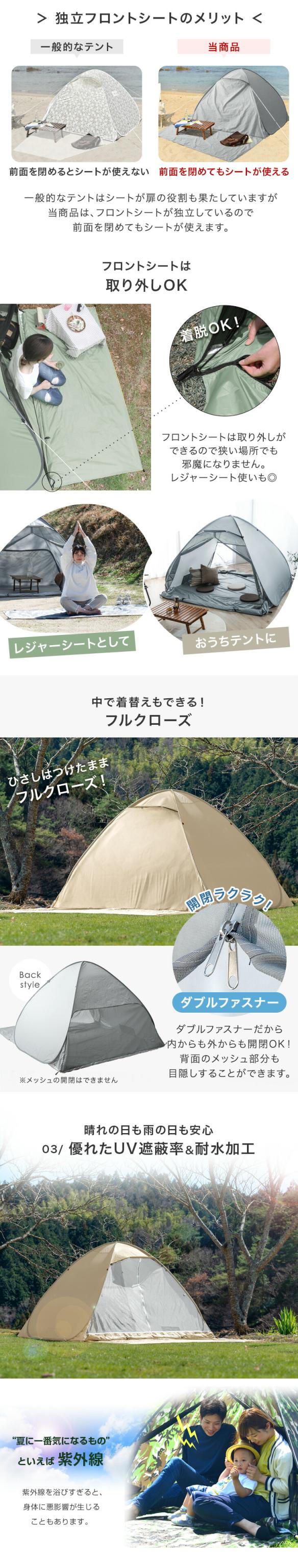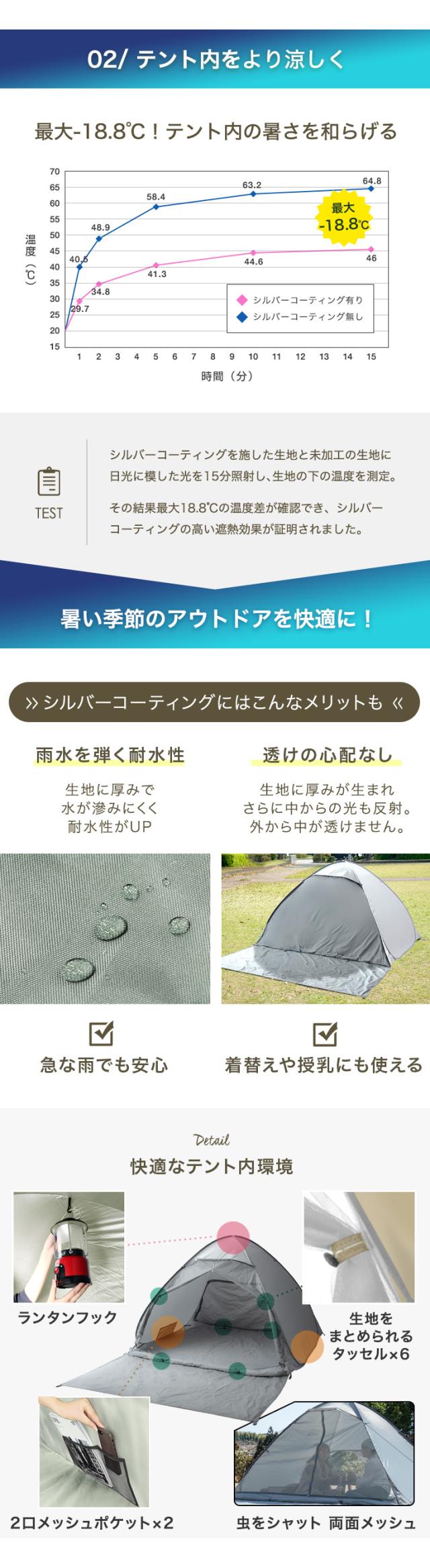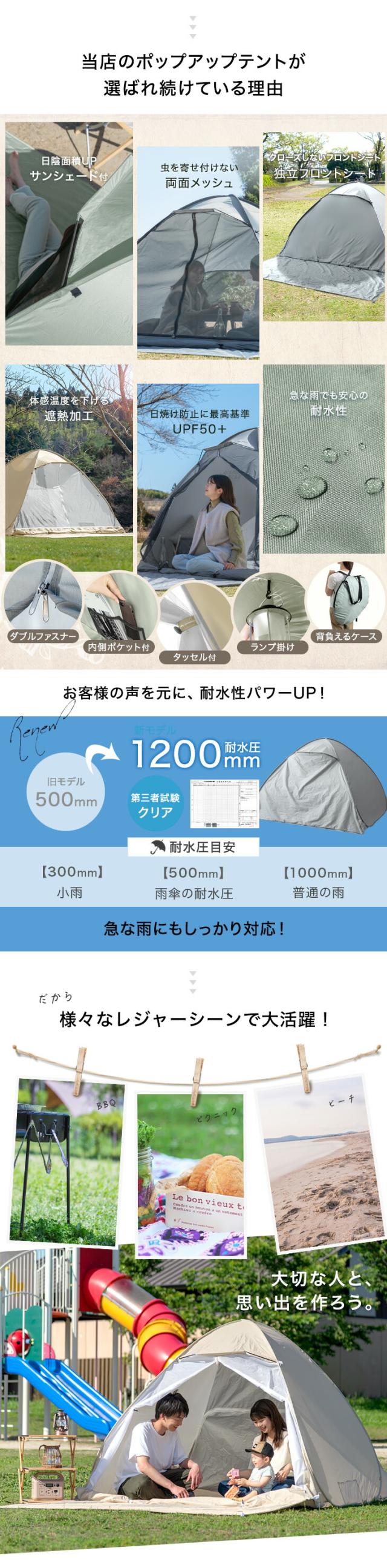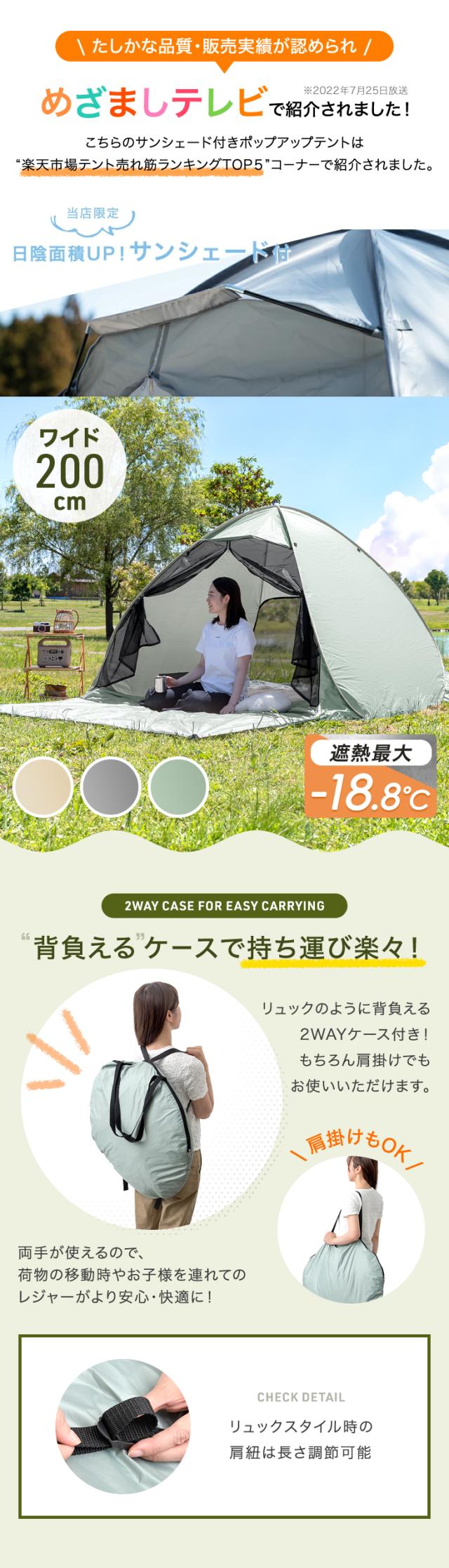 【10時〜P5%還元】 \月間ランキング1位&めざましテレビで紹介/ テント ワンタッチ 2人用 200cm ワンタッチテント サンシェード ポップアップテント ファミリー メッシュ フルクローズ ワイド uv 遮光 室内 海 1人用 3人用 4人用 3〜4人用