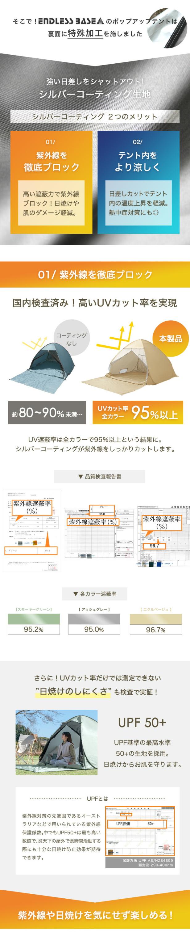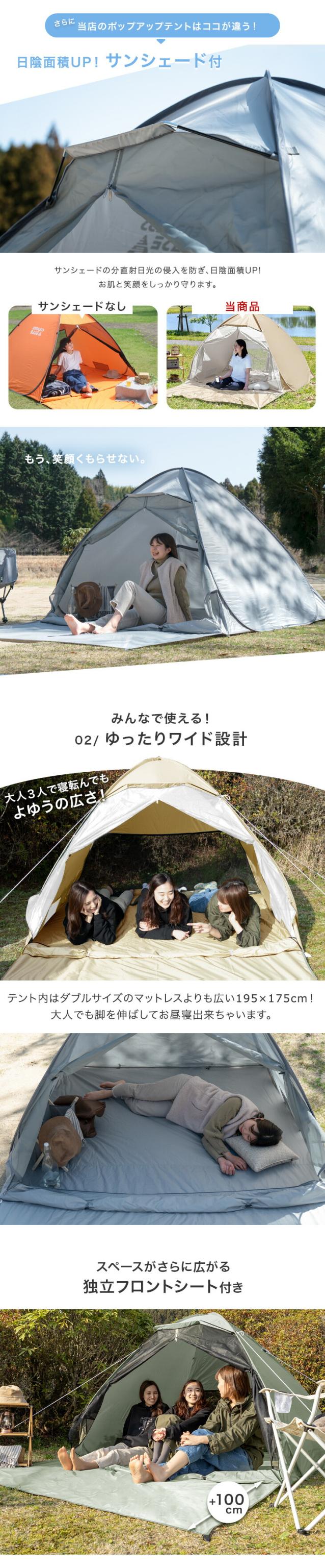 レジャーに便利なフルクローズ シェード 付き ポップアップテント!UV カット ワンタッチテント 200cm キャンプ アウトドア 運動会 紫外線防止 テント endlessbase
