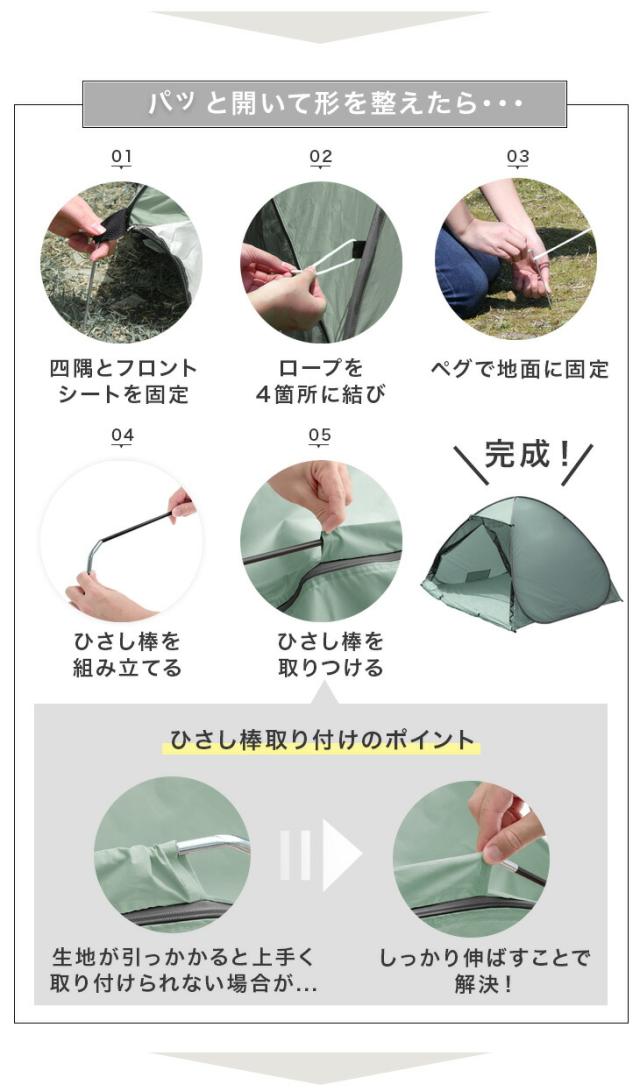※風向きにより倒れる場合がございますので、風向きをご確認の上、平らな場所に付属のペグでしっかりと固定して使用してください。